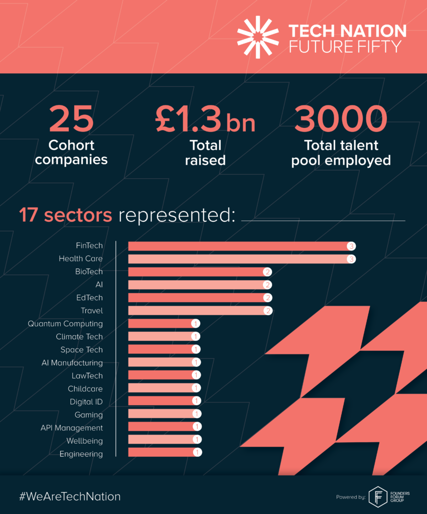 This year’s Future Fifty cohort comprises 25 companies spanning 17 verticals, including emerging sectors such as quantum computing, biotech, space tech and AI. Collectively, these companies have raised over £1.3bn and employ a talent pool exceeding 3,000.